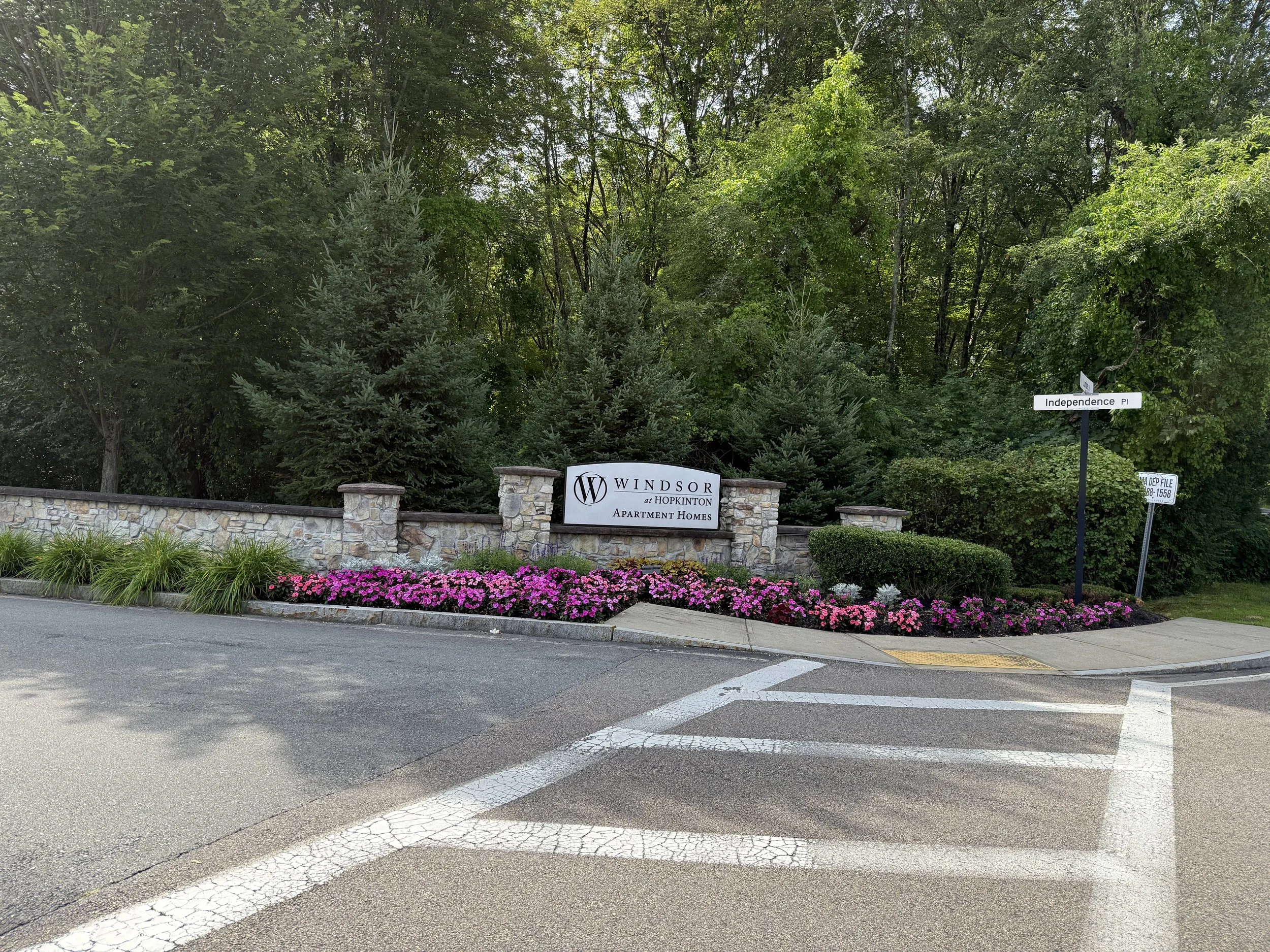 Step 1: Turn left onto Independence Lane at the entrance of Windsor at Hopkinton Apartments
